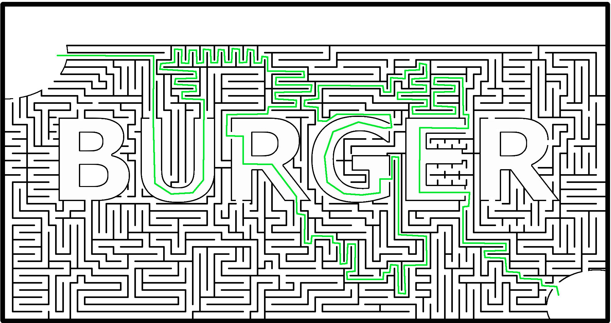 Graeme asked me to make a maze with the word BURGER in the middle. It’s based on a design he sent me.