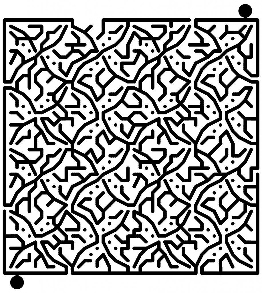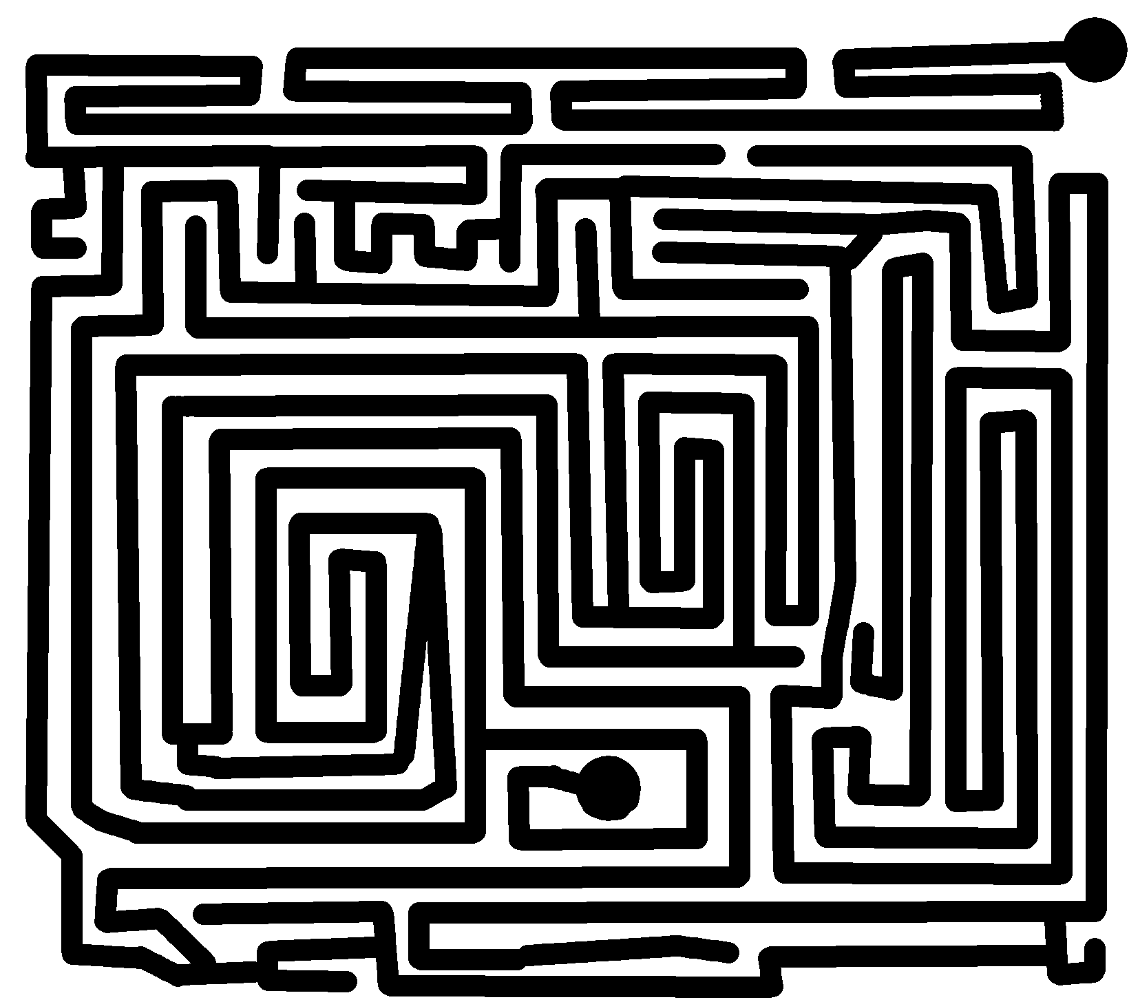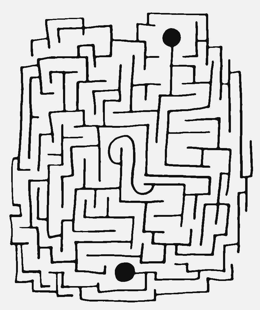 Two mazes this week: In both cases, travel from the dot in the center to the outside.