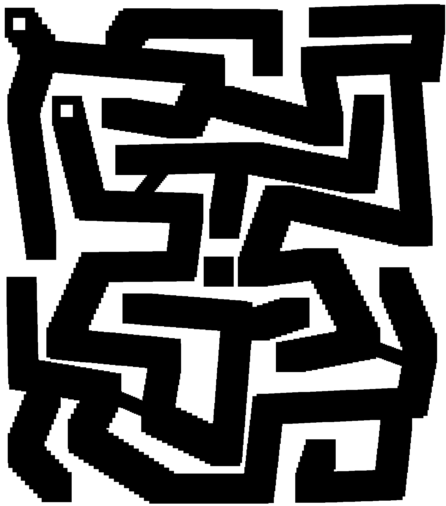 For this maze, go from one black triangle to the other, using the black lines as paths.