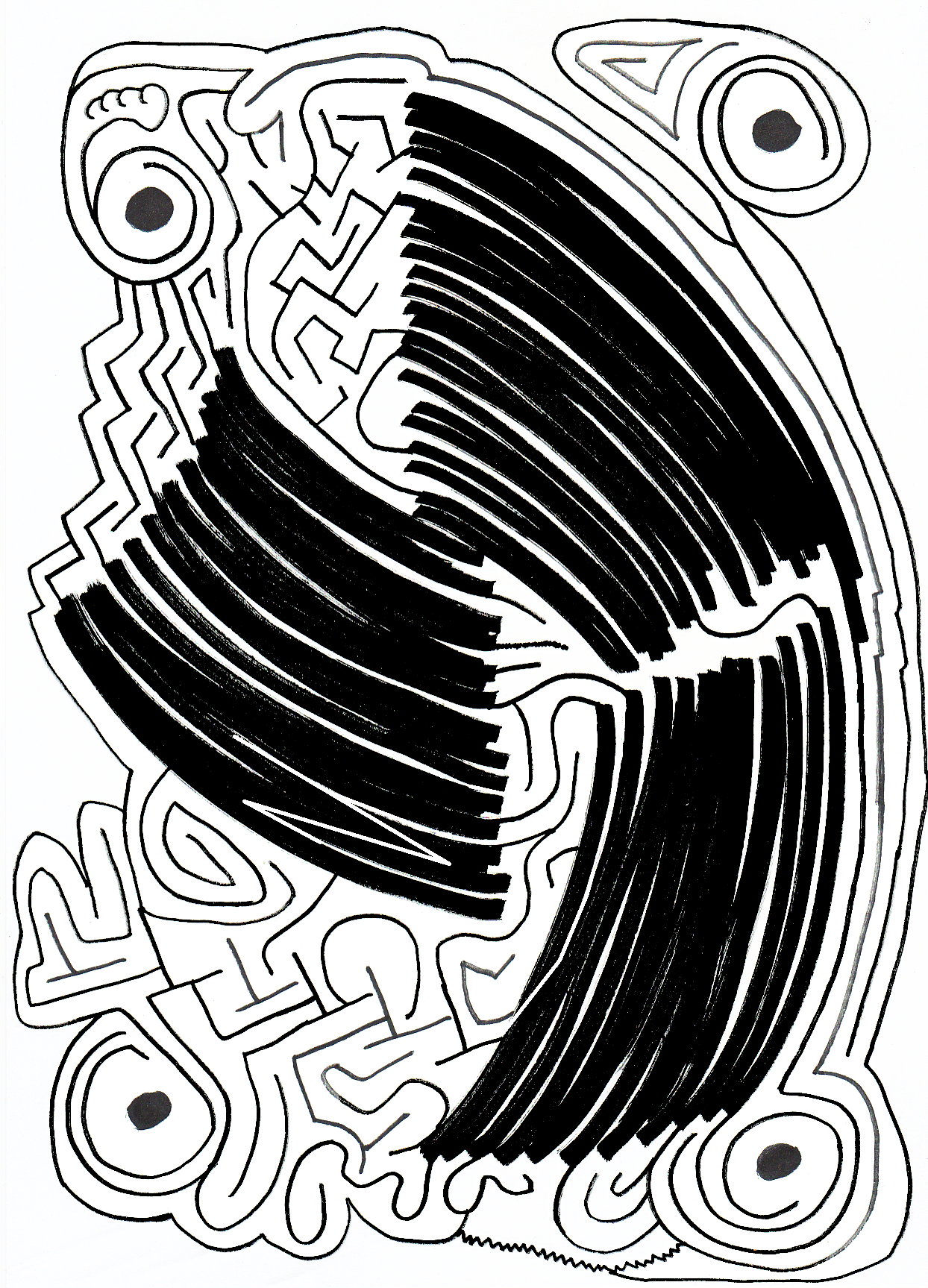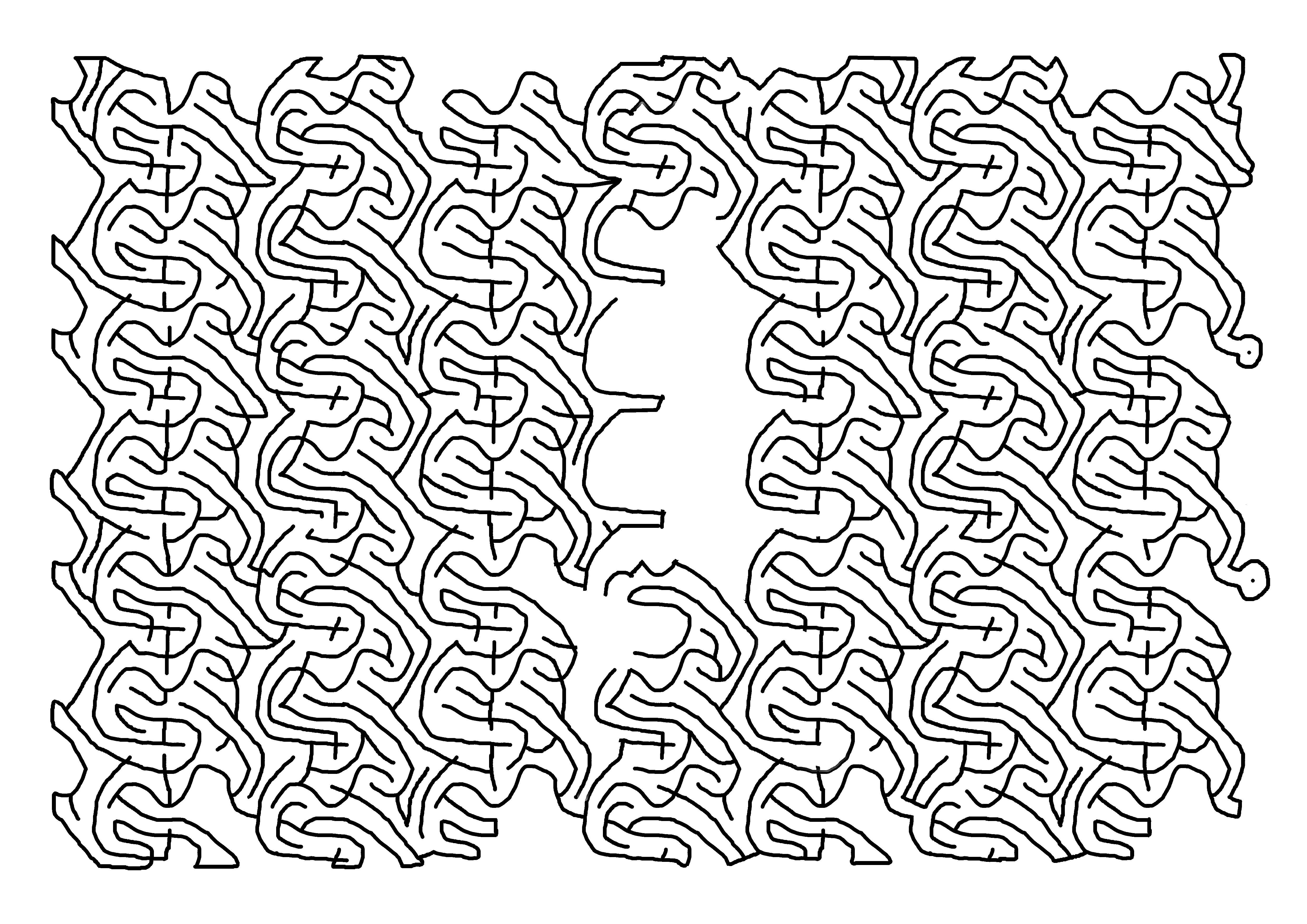 With more swirls and curls, this maze is my first to have lines behind the path which don’t affect the path.