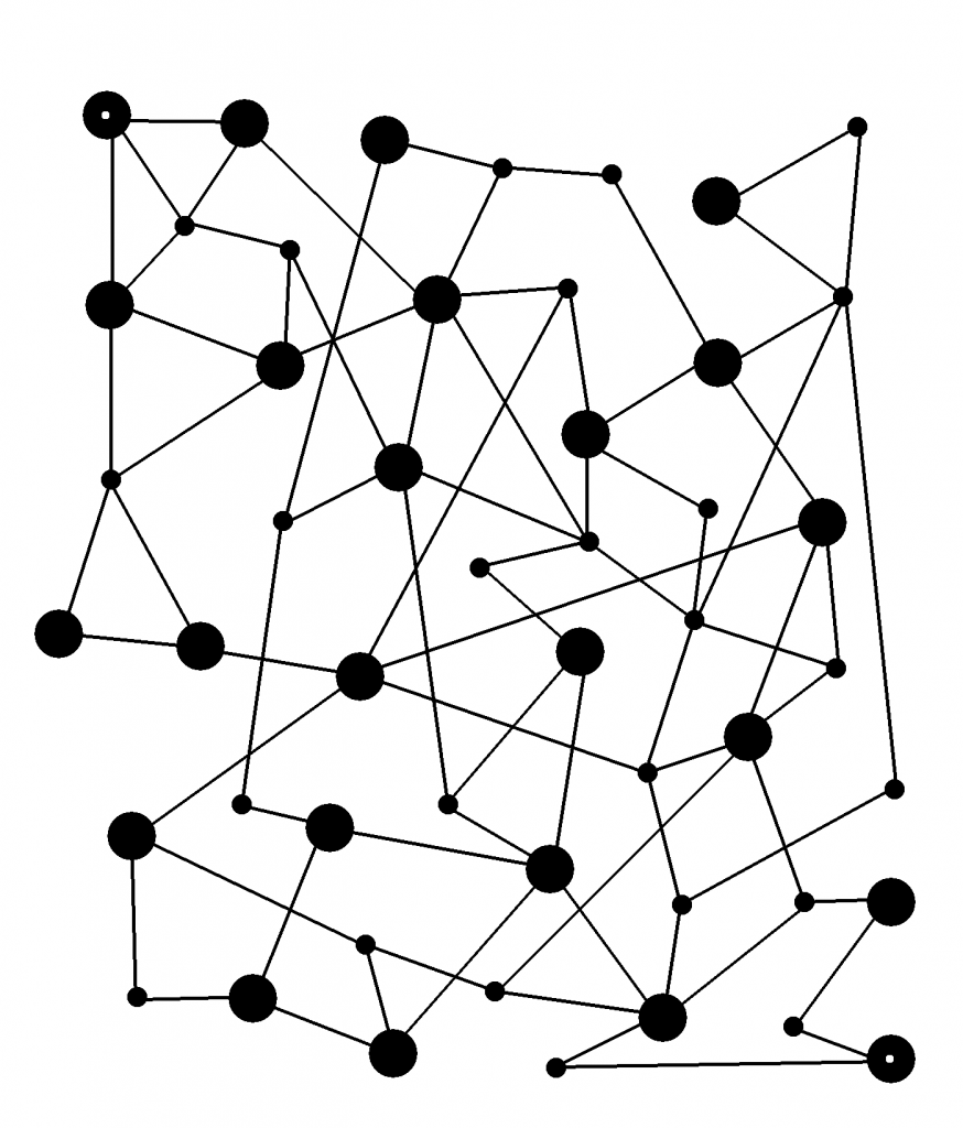 If you follow the paths without turning sharply, it’s relatively difficult to travel between the white nodes that are diagonally opposite each other.
