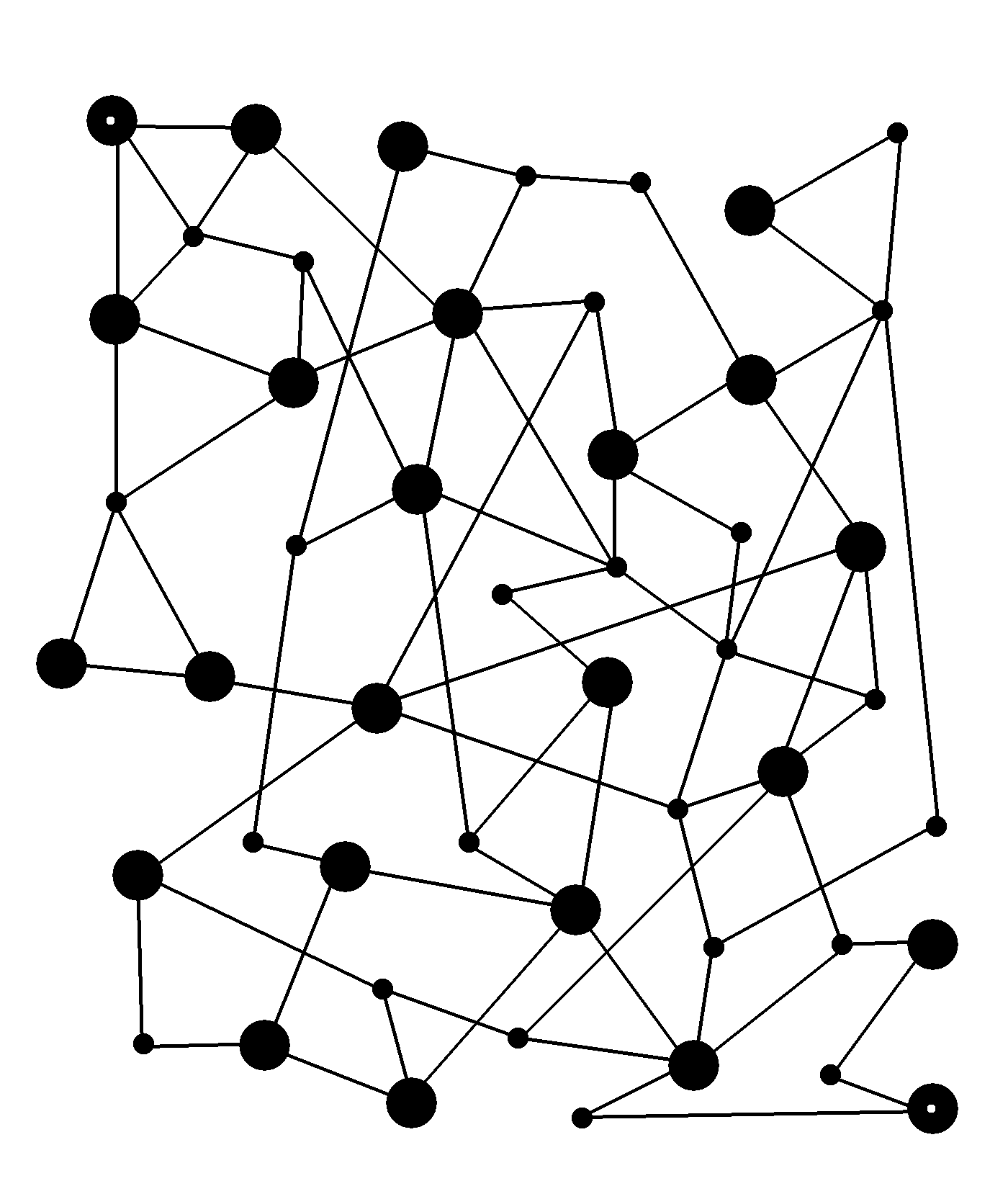 In this maze, follow paths straight until you reach a big or small circle. Then you can choose the next path to follow. Starting from a white-dotted dot, can you follow straight paths and alternately stopping at small and big dots?