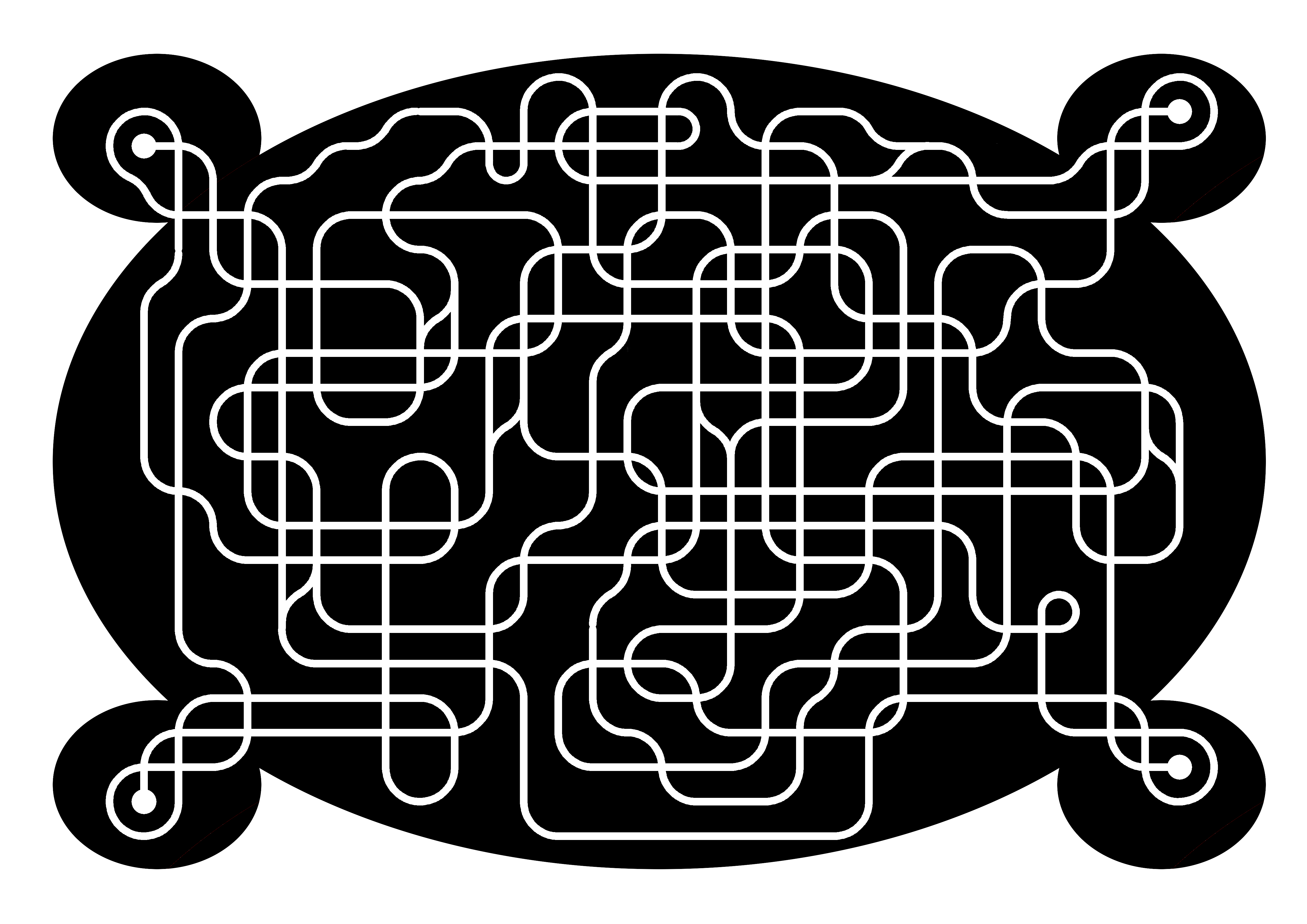The four dots in the corners are linked via white paths, some more easily navigated than others.
