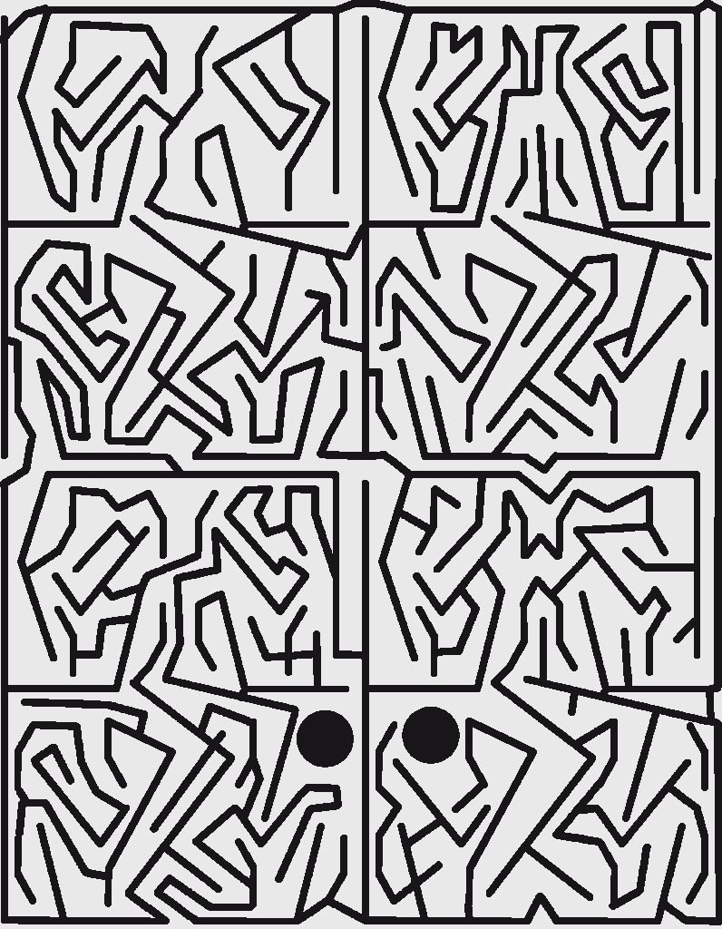 I used gimp again for this maze, wanting to use slight variations of repeated patterns to make a complex-looking maze actually be a bit complex.
